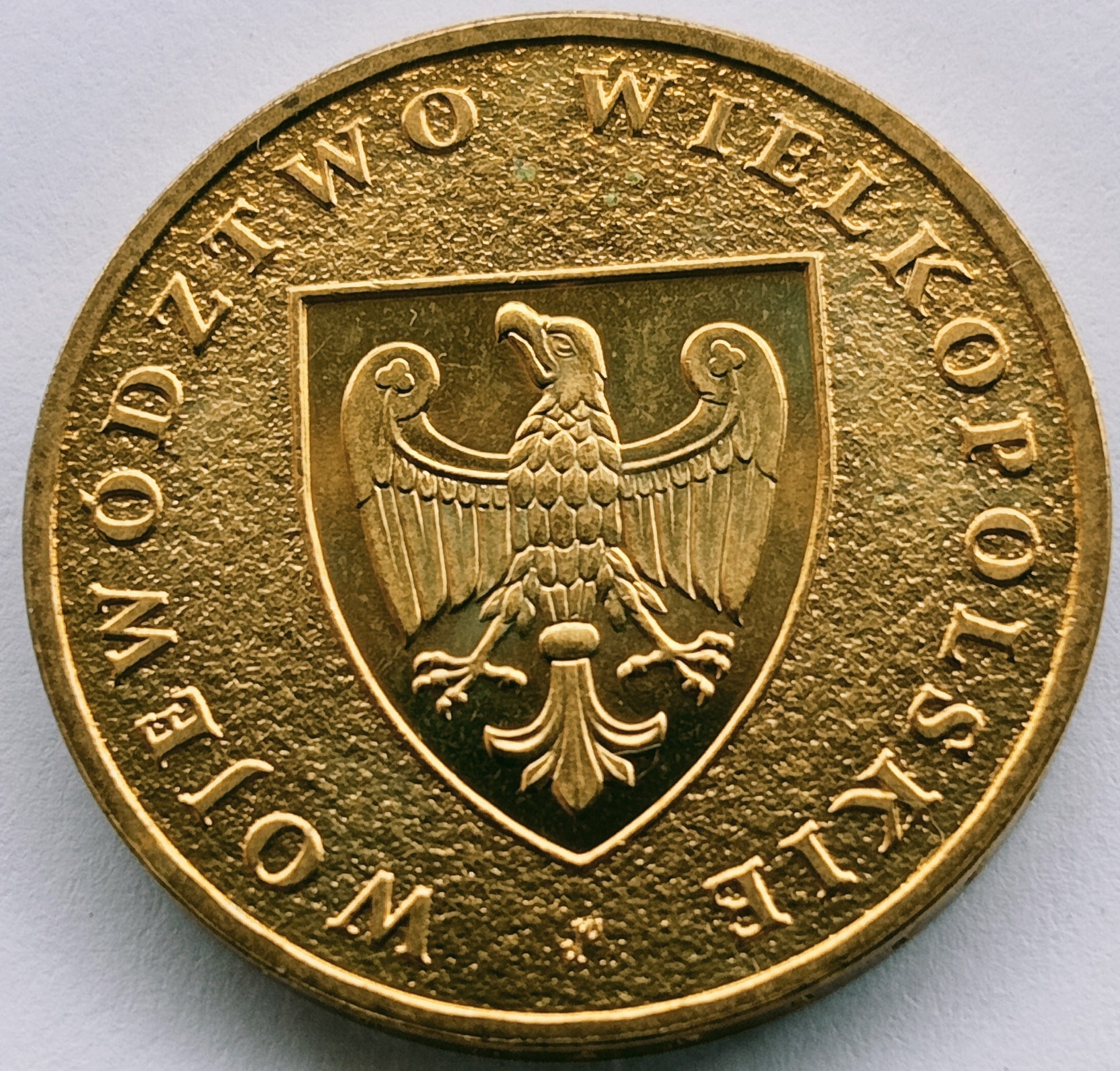 Na rewersie herb województwa wielkopolskiego z orłem. Naokoło koliście zapisane "WOJEWÓDZTWO WIELKOPOLSKIE". Na awersie centralnie orzeł biały i znak mennicy MW na tle konturów województw w Polsce. Niżej nominał zapisany jako "zł 2 zł", a od lewej do prawej przy otoku zapisane RZECZPOSPOLITA POLSKA 2005 jako nazwa emitenta i rok emisji.
