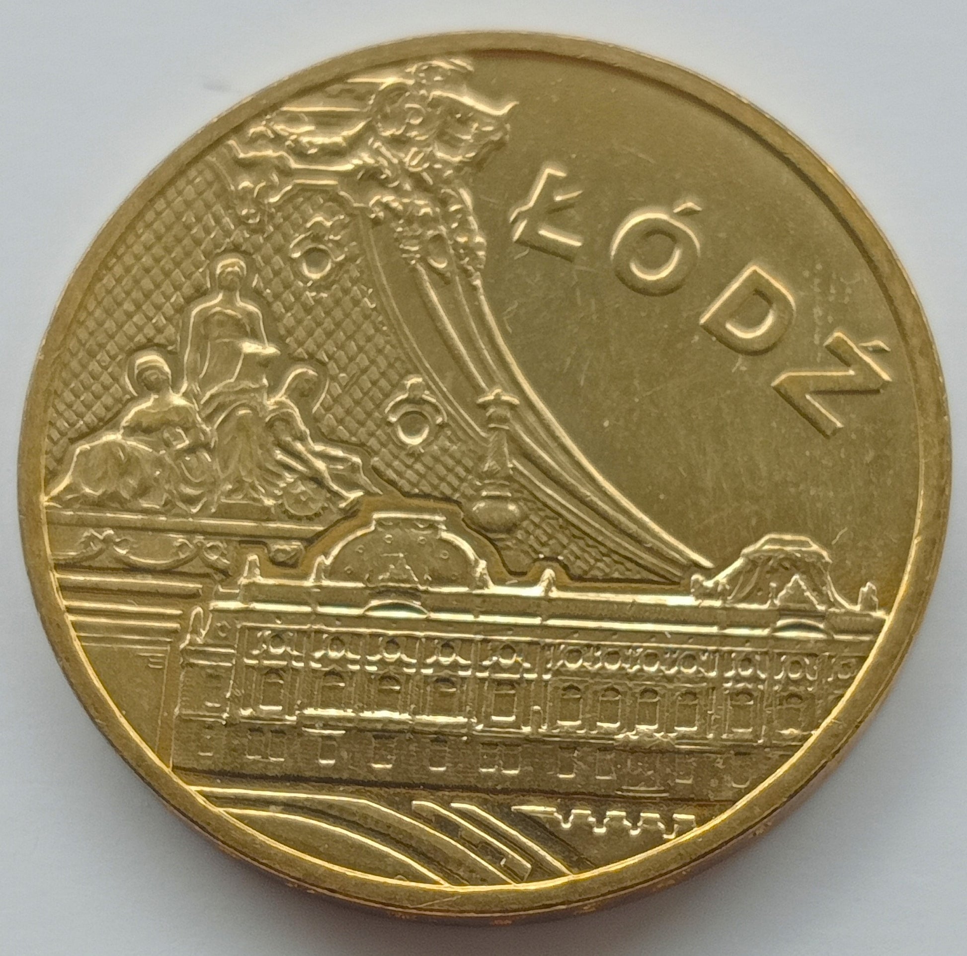Na rewersie monety poświęconej Łodzi widnieje jej nazwa, a pod nią Pałac Izraela Kalmanowicza Poznańskiego z tego miasta. Na awersie nominał "zł 2 zł". Wyżej orzeł biały, który pod łapą znak mennicy MW i dzieli na dwie części rok 2011. W górnej części nazwa państwa RZECZPOSPOLITA POLSKA.