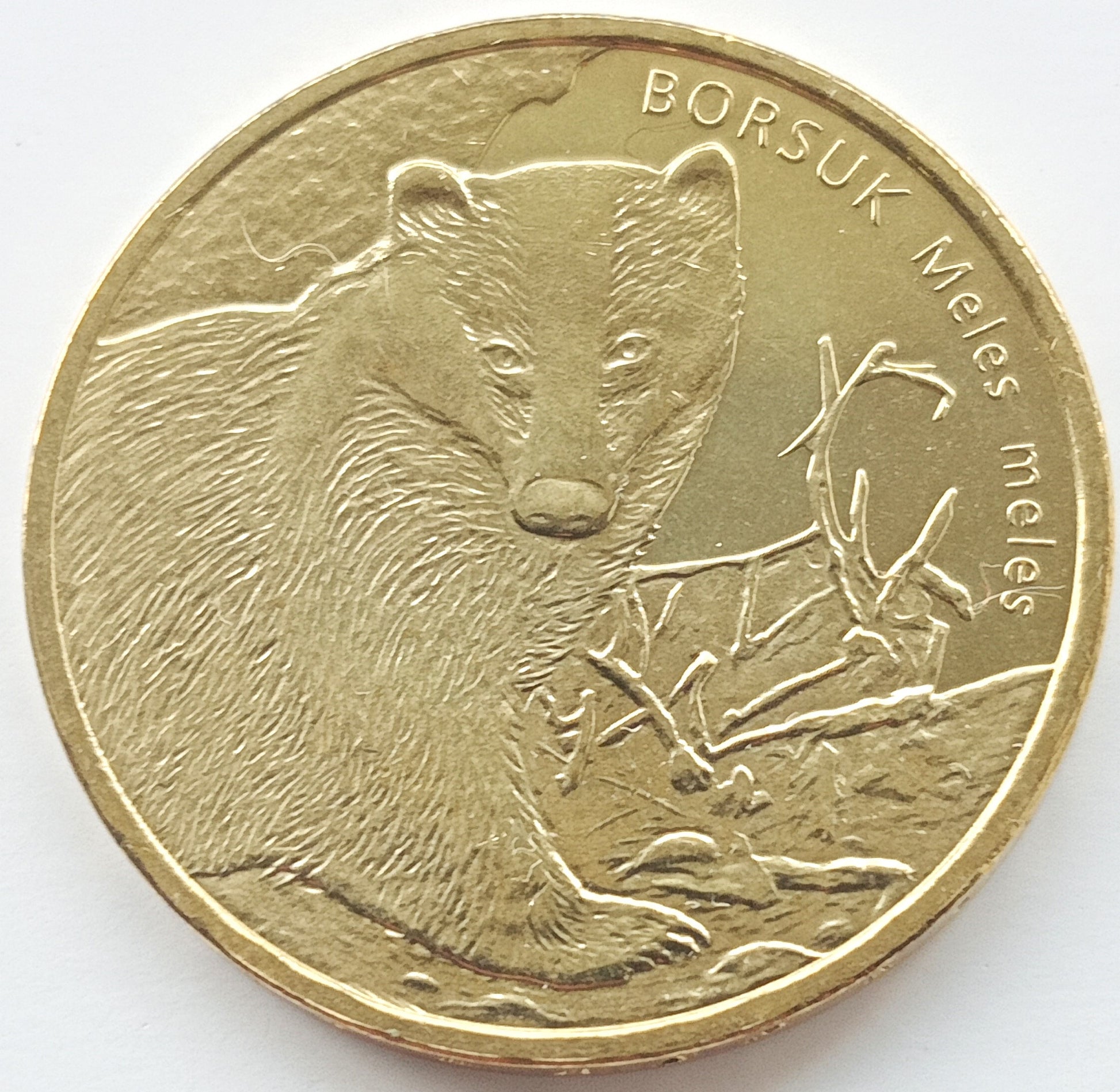 2 zł 2011 - Zwierzęta świata – borsuk (Meles meles)