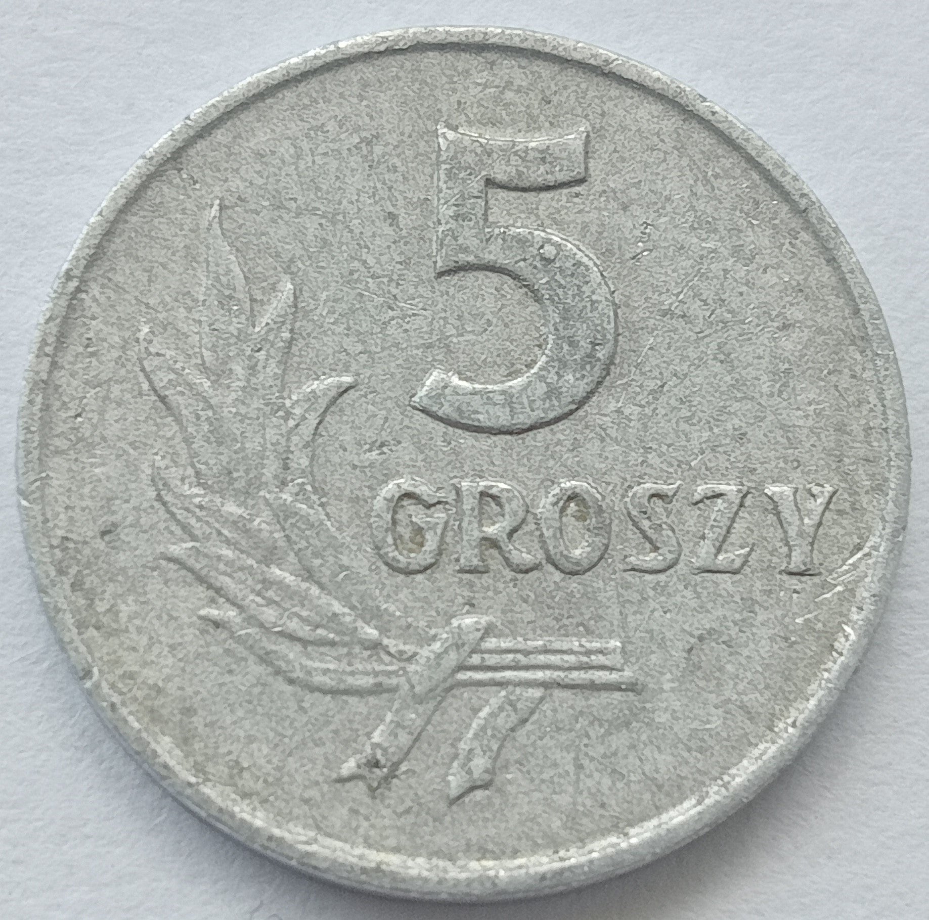 Awers: (wartość nominalna) 5 GROSZY na prawo od wiązki