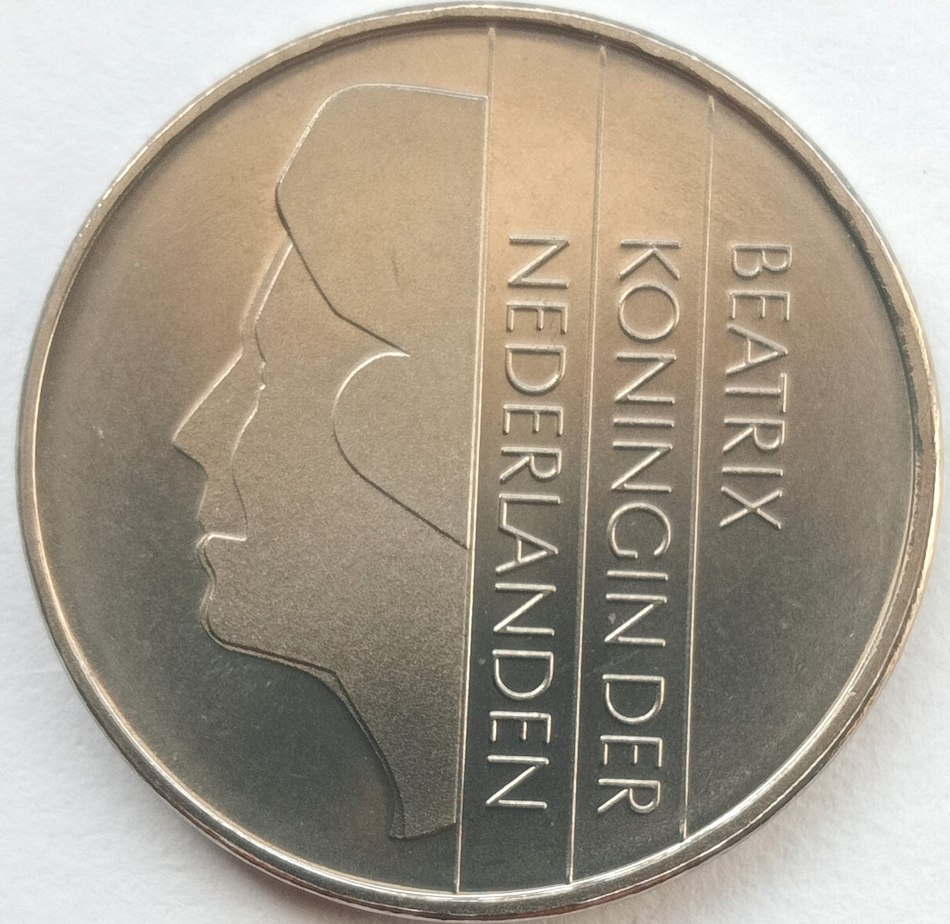 Rewers: Głowa (1/2) królowej Beatrix na lewo od pionowego tekstu między 2 wierszami BEATRIX / KONINGIN DER / NEDERLANDEN