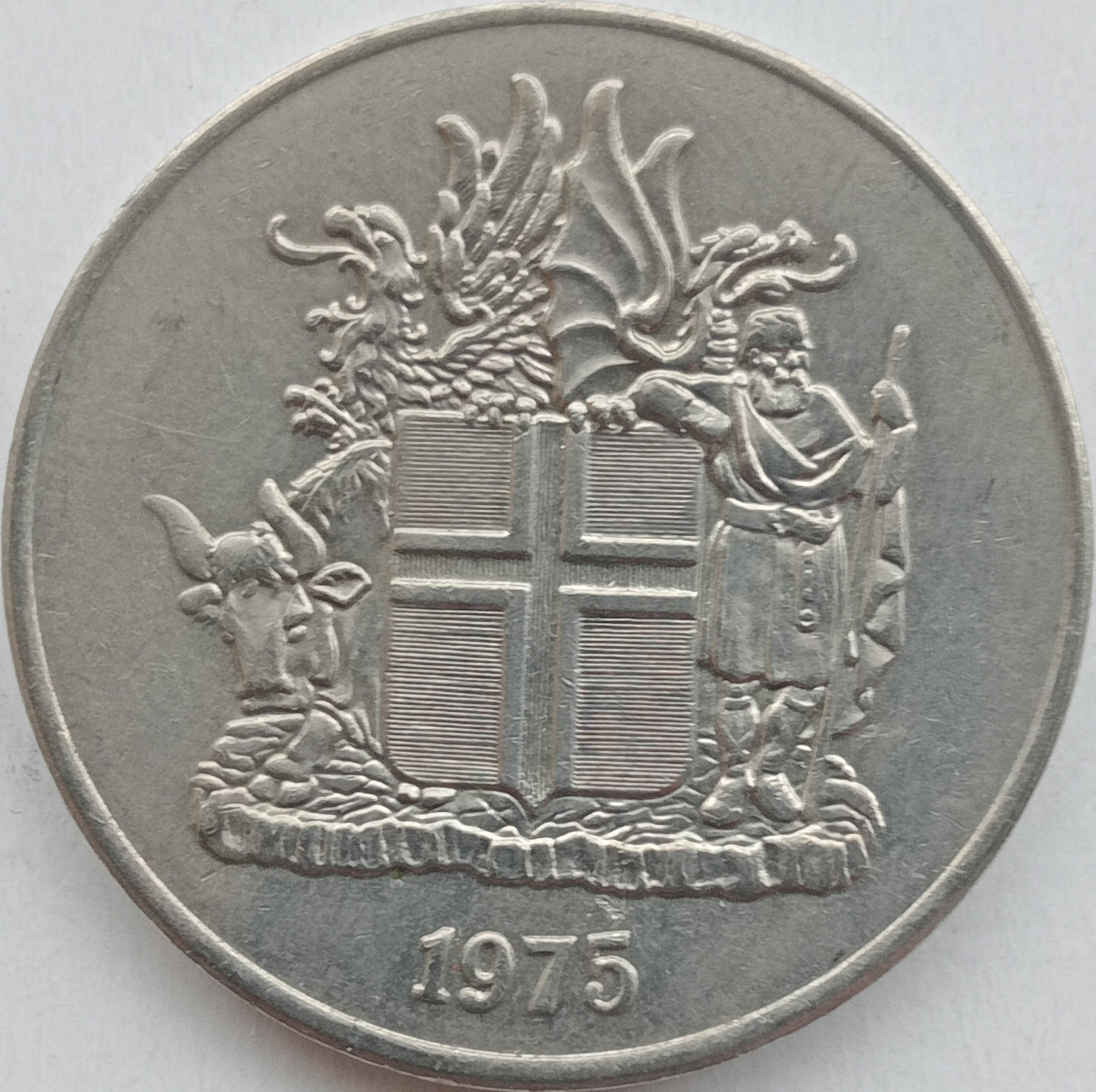 Legenda: (na górze, nazwa państwa) ÍSLAND (na dole, waluta) KRÓNUR