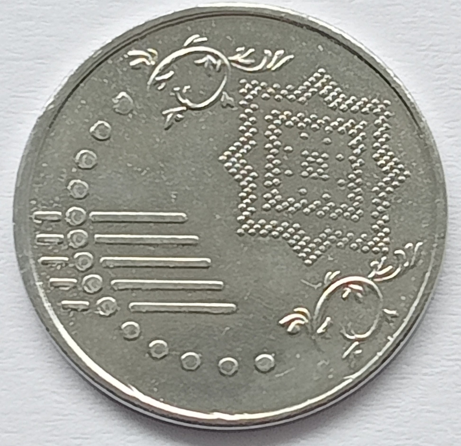 Rewers: Kropkowany wzór ośmiokąta na prawo od kropkowanego łuku