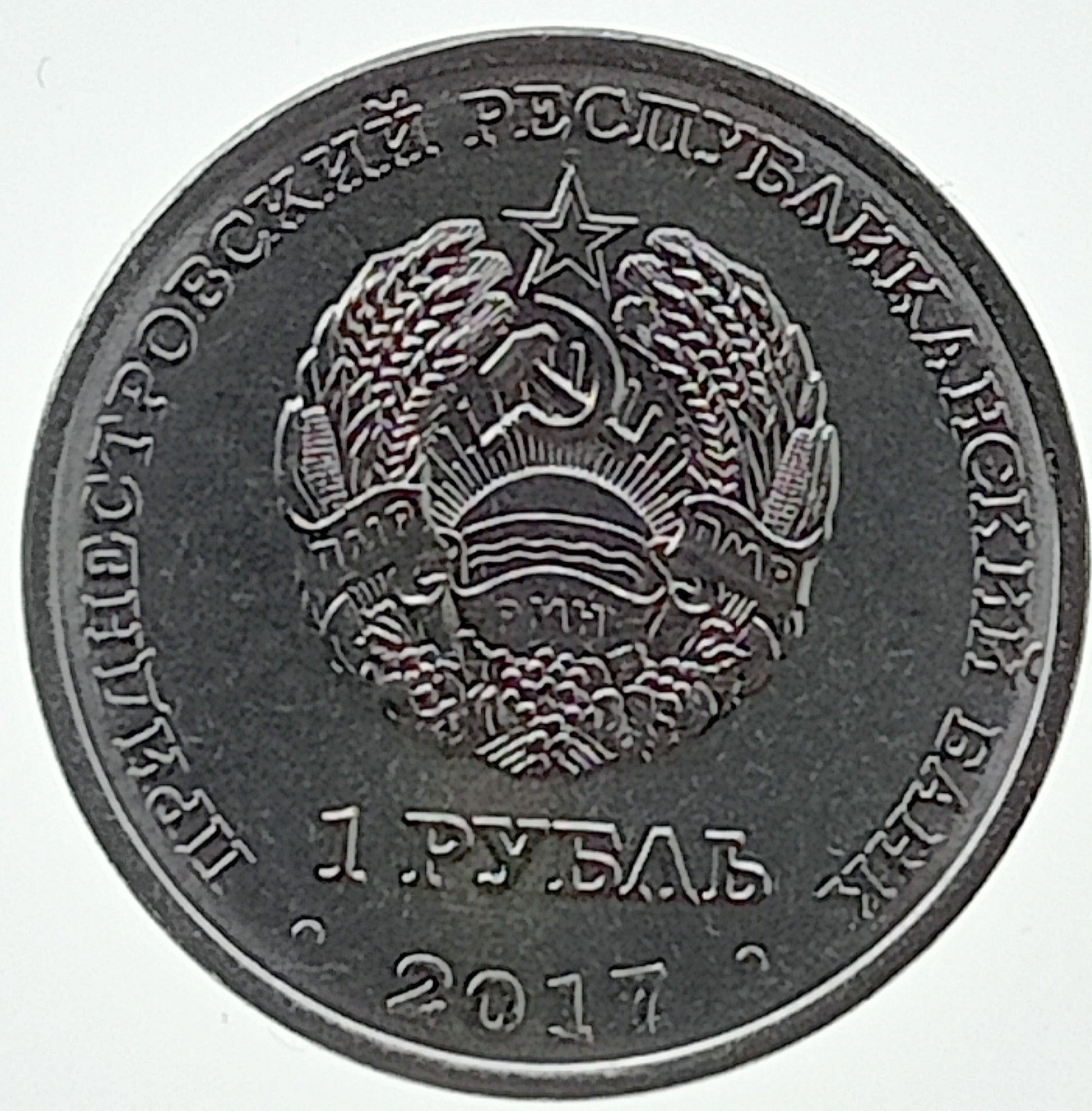 Awers monety: pośrodku - wizerunek godła państwowego Naddniestrzańskiej Republiki Mołdawskiej; Na kole napisy: u góry – „Naddniestrzański Bank Republikański”, u dołu – rok emisji monety „2017”; W dolnej części pod herbem - oznaczenie „1 РУБЛЬ”.